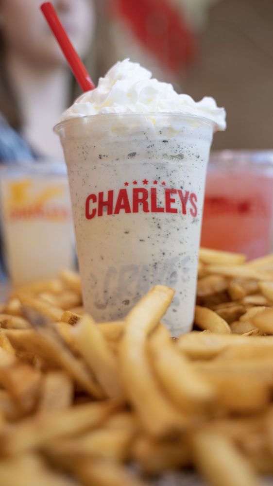 Charleys handspun Shakes are made to order with soft serve vanilla ice cream and your choice of Vanilla, Chocolate, Strawberry, or Cookies & Cream. All shakes are made topped with whipped cream.